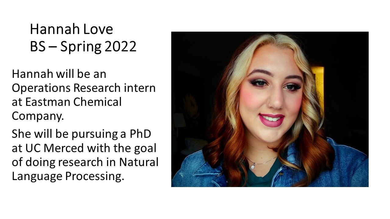 - Anna White received the 2022-2023 Faculty Award for Outstanding Undergraduate Student.